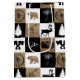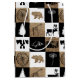 A beautiful camping outdoors adventure themed design. Each square depicts a scene or item from a camping trip like a bear, axes, deer, trees, canned food, tent, compass, camera and mushroom. The perfect decorative design, ideal gift for any occasion boy or girl.