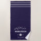 Commemorate your family or reunion with these unique custom beach towels. This design features a white, stary night sky above mountains and a compass. Personalise with your family last name and the year of the family reunion. Happy camping (or glamping)!