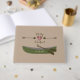 A wedding guestbook featuring an illustration of a green canoe and arrows on front. Personalise the text on front to include names and wedding date. Matching wedding invitations and other coordinating products are available at Jill's Paperie.
