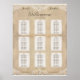 This beautifully attractive Wedding Reception seating chart or table plan poster has the look of vintage, grunge distressed and weathered canvas as the background. On top of the "canvas" to both the top and bottom, is a delicate ivory or pale cream colour lace pattern which incorporates leaves, roses and decorative scrolls. To the middle of the seating chart are nine boxes made to look like vintage parchment paper with roughly torn edges. The overal feel of this table plan poster is both elegant and rustic. This Version of the chart is set to accomodate 9 tables with up to 10 guests per table. Please note that this seating chart is entirely printed, there is no lace fabric on the chart and it is one single layer. Co-ordinating items are available. Please use the "send message" or "contact" links if you require any assistance in customising any of our products.