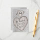 Elegant country wedding reception cards featuring a rustic silver birch tree with a carved heart featuring your wedding day details and initials.