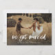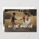 This simple and rustic wedding elopement announcement card features a personal wedding photo on the front, with the words "we got married" in casual, white handwritten script. The back of the card has room for another photo, plus room to either elaborate on your elopement details, or provide details for an after wedding reception or celebration. A whimsical and stylish design that is the perfect way to let friends and family know you are just married, especially after a micro wedding or wedding where only a small amount of guests could be invited.