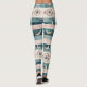 Rustic celestial stripe pattern leggings featuring moon phases, sun symbols, and tribal-inspired details in earthy teal and clay tones. A calm, grounding design ideal for boho lovers, spiritual creatives, and nature-inspired interiors. A thoughtful gift for moon watchers, astrology fans, and earthy souls.