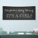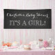 Custom name it's a girl baby shower sign with rustic country chalkboard pattern and vintage style handwritten lettering. A perfect personal touch for your rustic or woodland theme baby shower.