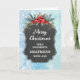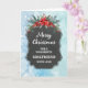 Merry Christmas for girlfriend card with rustic country chalkboard pattern and winter foliage with poinsettias.
