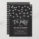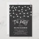 Invite family and friends with this rustic and whimsical tea party invitation. It features white hanging fairy lights on a faux chalkboard background. This hanging lights invitation is perfect for outdoor tea parties.