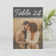 Bold chalk-style calligraphy and a dark chalkboard background frame your favourite photo on this rustic wedding table number card. The vintage chalkboard look pairs perfectly with barn, vineyard, and outdoor reception settings. To customise, type in the table number, click Change by the default photo to upload your own, and add that individual table number card to your shopping cart. Repeat for all of the table numbers that you need.