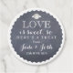 Rustic chalkboard wedding favour tags with a graphic scalloped white edge features vintage type and clever wording ideal for guests to take a sweet treat home after the big day.