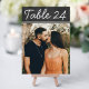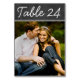Bold chalk-style calligraphy and a dark chalkboard background frame your favourite photo on this rustic wedding table number card. The vintage chalkboard look pairs perfectly with barn, vineyard, and outdoor reception settings. To customise, type in the table number, click Change by the default photo to upload your own, and add that individual table number card to your shopping cart. Repeat for all of the table numbers that you need.