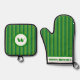 Rustic Charm Green Striped Oven Mitt & Pot Holder Set
