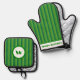 Add some country style to your kitchen with these Rustic Charm Green Striped Oven Mitt & Pot Holder Sets. The stripes in three captivating shades of green create a pleasing visual effect against the white customisation areas, which are outlined in a complementary shade of green. A personalised green monogram letter on the hot pad and custom text at the bottom of the oven mitt add a unique touch, making these sets perfect for a personal gift. Available as a set or individually - you can choose to get just an oven mitt or just a pot holder. Order yours today to add sophistication to your kitchen or to brighten the day of a friend or loved one with a thoughtful, personalised present.