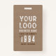 This rustic charm business employee badge features a simple yet professional kraft paper background with rough textured white and brown typeface. Simply replace your employee's name, professional title, contact information in the front, upload your logo and update your business information including your tagline, established date, location in the back.