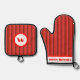 Add some country style to your kitchen with these Rustic Charm Red Striped Oven Mitt & Pot Holder Sets. The stripes in three captivating shades of red create a pleasing visual effect against the white customisation areas, which are outlined in a complementary shade of red. A personalised red monogram letter on the hot pad and custom text at the bottom of the oven mitt add a unique touch, making these sets perfect for a personal gift. Available as a set or individually - you can choose to get just an oven mitt or just a pot holder. Order yours today to add sophistication to your kitchen or to brighten the day of a friend or loved one with a thoughtful, personalised present.