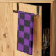 This moody kitchen towel features a pattern of rustic checks, checkers that are distressed in purple and black.