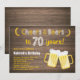 Rustic Cheers and Beers 70th Birthday Invitation. Adult Birthday. Beer Birthday for men. Rustic Wood Background. Country Vintage Retro. For further customisation, please click the "Customise it" button and use our design tool to modify this template.