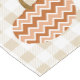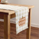 White plaid patterned table runner with trendy chevron patterned pumpkins on each end.