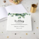 Watercolor eucalyptus foliage in a beautiful green colour palette personalised wedding guestbook. Personalise text font style, colour, and size.