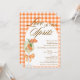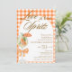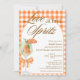 Rustic Elegant Chic Love At First Spritz Bridal Shower Invitation - Featuring a watercolor Aperol spritz with an orange slice garnish, adorned with a coquette orange bow. The invitation has a rustic, gingham plaid orange background and an arch frame. The words "Love at first Spritz" are written in a mixture of refined script calligraphy and elegant block brown text. Edit this bridal shower invitation template with your own event details. Also available as an instant digital download, easily send via text, email or social media.