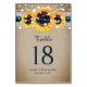 Rustic Chic Navy Blue Burlap Lace Sunflower Table Number