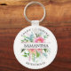 Rustic chic pink peonies are surrounded by green leaves and vines. The bridesmaid's name divides the peonies in half. The bride's name and wedding is written in curved text above the roses bridesmaid is written in curved text below. This keychain is part of the Pink Peony Wedding collection. You'll find many other coordinating bridesmaid gifts - as well as templates to personalise your wedding stationery, ceremony and reception. Please contact me if you need help finding an item.