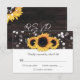 Custom rustic sunflower wedding RSVP cards. Perfect card design to complement your rustic country, or barn wedding party inspired by sunflower flowers. Matching items available to complement these rustic chic wedding RSVP cards.