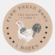 Customise your farm business with a personalised egg carton label which can also be used as promotional material in mailing. Farmhouse style with chicken illustration holding important notes on your produce and your business info in sans serif font. Visit our store for more items in this collection and contact us if you have some special requests for your business, we will be happy to help you.
