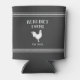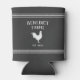 These cool personalised can coolers feature your family name or farm name on a charcoal grey background, with your year established and a chicken illustration. Rope stripe detailing at the top and bottom completes the design for a rustic farmhouse style look.