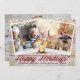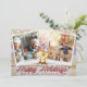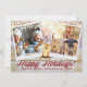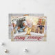 Bring on the cuteness this Christmas with rustic wildlife holiday greeting cards! These adorable cards will hold two of your own favourite images. Country white washed wood background with a reindeer on front and his little animal friends peeking around a personalised note on the back. These stunning collage cards are simple to personalise -- Just add two memorable family pictures, and fill in your names on front and then write something special on the note faux-taped on the back! Pretty red glitter-look effect script message sends merry wishes of a Happy Holiday season with a white winter scene speckled with multiple faux gold snowflakes. There are two vintage instant camera photo frames and one of Santa's reindeer curled up in the centre. Adorning the top we've added festive holiday lights for a finished card that shines bright. Make everyone's spirits bright this December with custom personalised holiday cards.