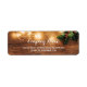 Rustic Christmas country corporate holiday return label photo with brown wood, and Christmas string lights, red and green mistletoe photo