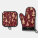 Rustic Christmas Evergreen Trees Red and Gold Oven Mitt & Pot Holder Set