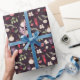 Enhance your gift-giving with our unique hand-painted Christmas wrapping paper. on dark purple. Infuse the festive spirit into your presents with rustic green pine branches, festive red berries, delicate beige flowers, and Christmas ornaments baubles in all shapes and colours. Elevate your gift presentation with this charming and one-of-a-kind wrapping paper.
