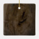 A Rustic Christmas Lights 3 Photo Collage Holiday Ornament with wood background and script names. Click the personalise button to customise this design with your photos and details.