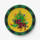 Rustic Christmas Moose, Tree, Green Buffalo plaid Paper Plate