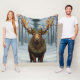 Rustic Christmas moose winter snowy woodland forest fleece blanket.