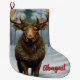 Rustic Christmas moose winter snowy woodland forest stocking.