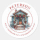 These awesome return address labels with a festive rustic home in winter with snow and Christmas decorations, your last name and address in red will make addressing your Christmas moving cards just that much easier! They are so easy to just stick on the envelope! The font is crisp and clean making them look modern yet traditional. It is so easy to make these your own. Simply select Personalise this template and type in your family name and your address. It's that easy!