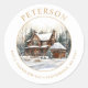 These awesome return address labels with a festive rustic home in winter with snow and Christmas decorations, your last name and address in gold will make addressing your Christmas moving cards just that much easier! They are so easy to just stick on the envelope! The font is crisp and clean making them look modern yet traditional. It is so easy to make these your own. Simply select Personalise this template and type in your family name and your address. It's that easy!