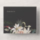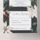 ALSO AVAILABLE WITH A QR CODE TO SCAN. This design features green pine sprigs, red berries, white poinsettias, and holiday greenery on a soft charcoal black background. A monogram on the back envelope flap completes the simple but elegant look of this all in one invitation. Personalised All-In-One invitations are a unique combination of both a beautifully printed custom invitation with an easy to tear off perforated RSVP postcard. And they are so easy to use! You simply fold, then seal the back flap with the three included clear stickers, and mail. And when your guests receive your custom invite, they just tear the perforated RSVP Card off and drop it back in the mail to you!