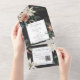 AVAILABLE WITH OR WITHOUT A QR CODE. This design features green pine sprigs, red berries, white poinsettias, and holiday greenery on a soft charcoal black background. A monogram on the back envelope flap completes the simple but elegant look of this all in one invitation. Personalised All-In-One invitations are a unique combination of both a beautifully printed custom invitation with an easy to tear off perforated RSVP postcard. And they are so easy to use! You simply fold, then seal the back flap with the three included clear stickers, and mail. And when your guests receive your custom invite, they just tear the perforated RSVP Card off and drop it back in the mail to you!