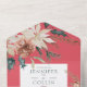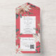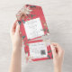 AVAILABLE WITH OR WITHOUT A QR CODE. This design features green pine sprigs, red berries, white poinsettias, and holiday greenery on a Christmas red background. A monogram on the back envelope flap completes the simple but elegant look of this all in one invitation. Add a QR code to your invitation so that gusts can quickly access your wedding Website for details, directions, menu options, and more, or add your gift registry Web URL. Personalised All-In-One invitations are a unique combination of both a beautifully printed custom invitation with an easy to tear off perforated RSVP postcard. And they are so easy to use! You simply fold, then seal the back flap with the three included clear stickers, and mail. And when your guests receive your custom invite, they just tear the perforated RSVP Card off and drop it back in the mail to you!