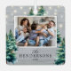 Step into a winter wonderland with our rustic family holiday ornaments! Featuring the charm of a grey wooden background, twinkling string lights, and enchanting watercolor Christmas trees. Customisable with a memorable photo, your family name, and the year.
