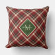Rustic Christmas Plaid Green Monogram Name Holiday Cushion