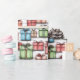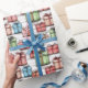 This rustic Christmas design blends timeless charm with clean, modern style. A scattered pattern of minimalist Christmas presents appears in a warm, earthy colour palette of rust, deep red, blue and evergreen tones. Set against a soft cream-coloured background, the design evokes a cosy, handcrafted feel with a contemporary twist. Perfect for bringing together Scandi-inspired simplicity and natural holiday warmth for a look that feels both fresh and nostalgic.