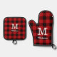Rustic Christmas Red Buffalo Plaid Monogram Oven Mitt & Pot Holder Set