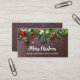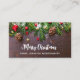 Business cards with a rustic photograph of a brown wooden table with pinecones, pine needles, snow, and Christmas ornaments. Festive and lovely.