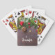 Playing cards with a rustic photograph of a brown wooden table with pinecones, pine needles, snow, and Christmas ornaments. Festive and lovely.
