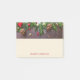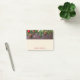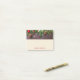 Sticky notes with a rustic photograph of a brown wooden table with pinecones, pine needles, snow, and Christmas ornaments. Festive and lovely.