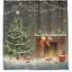 Rustic Christmas Tree and Fireplace Shower Curtain