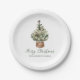 Add a festive and elegant touch to your holiday table with this beautiful Christmas paper plate featuring a hand-painted evergreen tree adorned with blush, champagne, green, and golden caramel-toned ornaments accented by soft white lights. The tree rests in a woven wicker basket at the top of the design, with “Merry Christmas” displayed below in green handwritten script and your family name shown underneath. Set against a white background, this design combines rustic farmhouse charm with timeless holiday style — perfect for Christmas dinners, parties, and festive gatherings.
