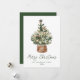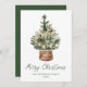 Share holiday warmth with this rustic watercolor Christmas tree holiday card. The design features a hand-painted evergreen tree adorned with neutral blush, champagne, green, and golden caramel-toned ornaments accented by soft white lights, all nestled in a woven wicker basket. “Merry Christmas” is displayed below in green handwritten script, with your family name and year shown underneath. Set against a white background, this non-photo design offers an elegant, cozy farmhouse look. The back includes space for a personal message.